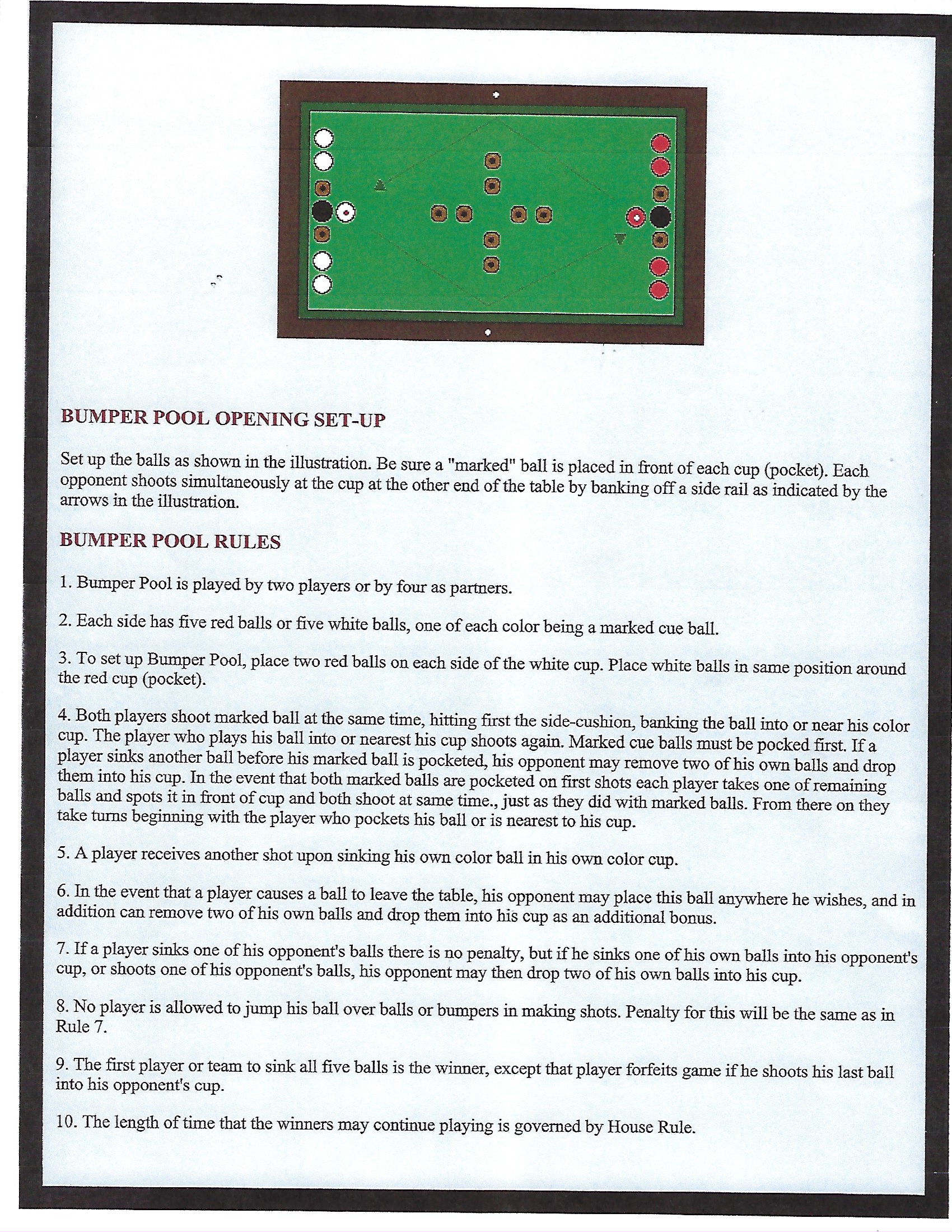 bumper pool rule sheet - Over 21 P…